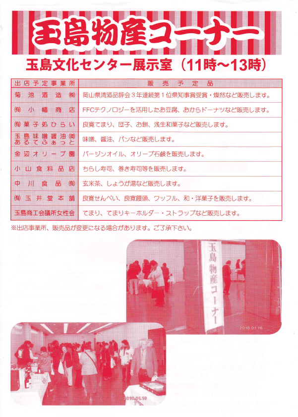 同時に玉島物産コーナーも開催いたします。